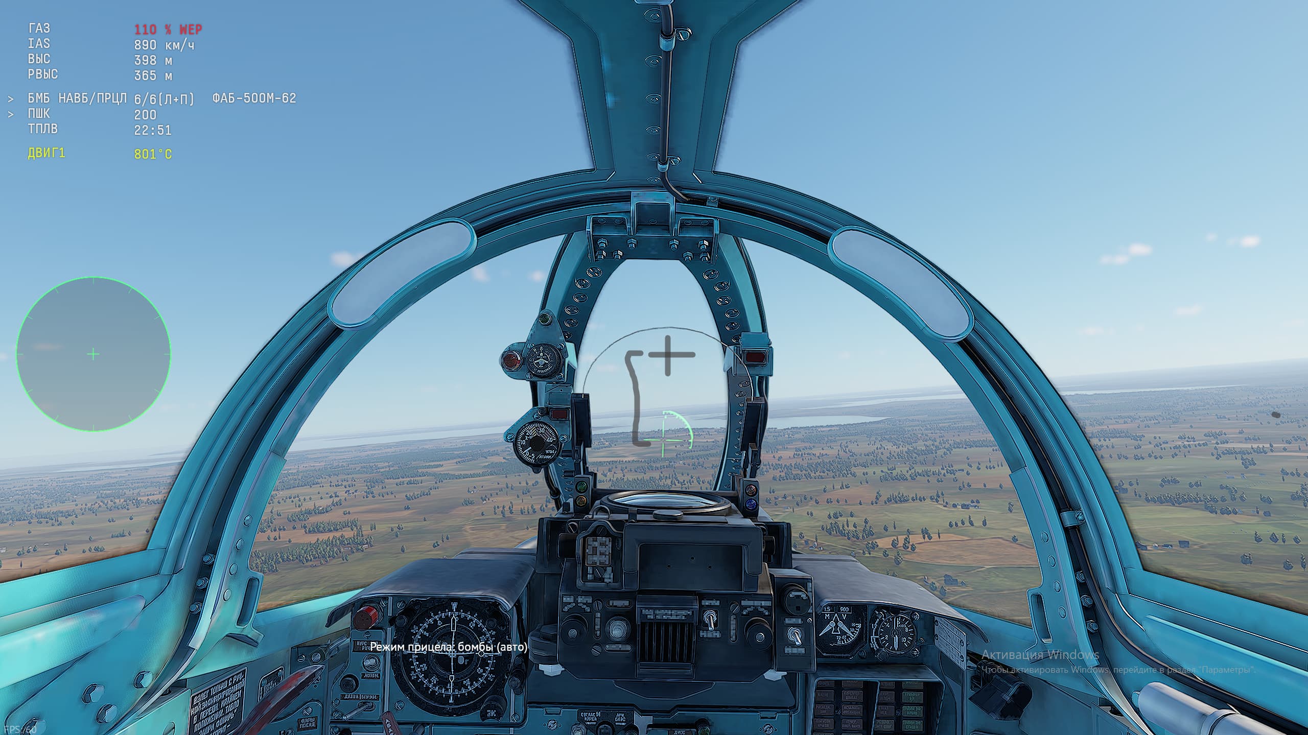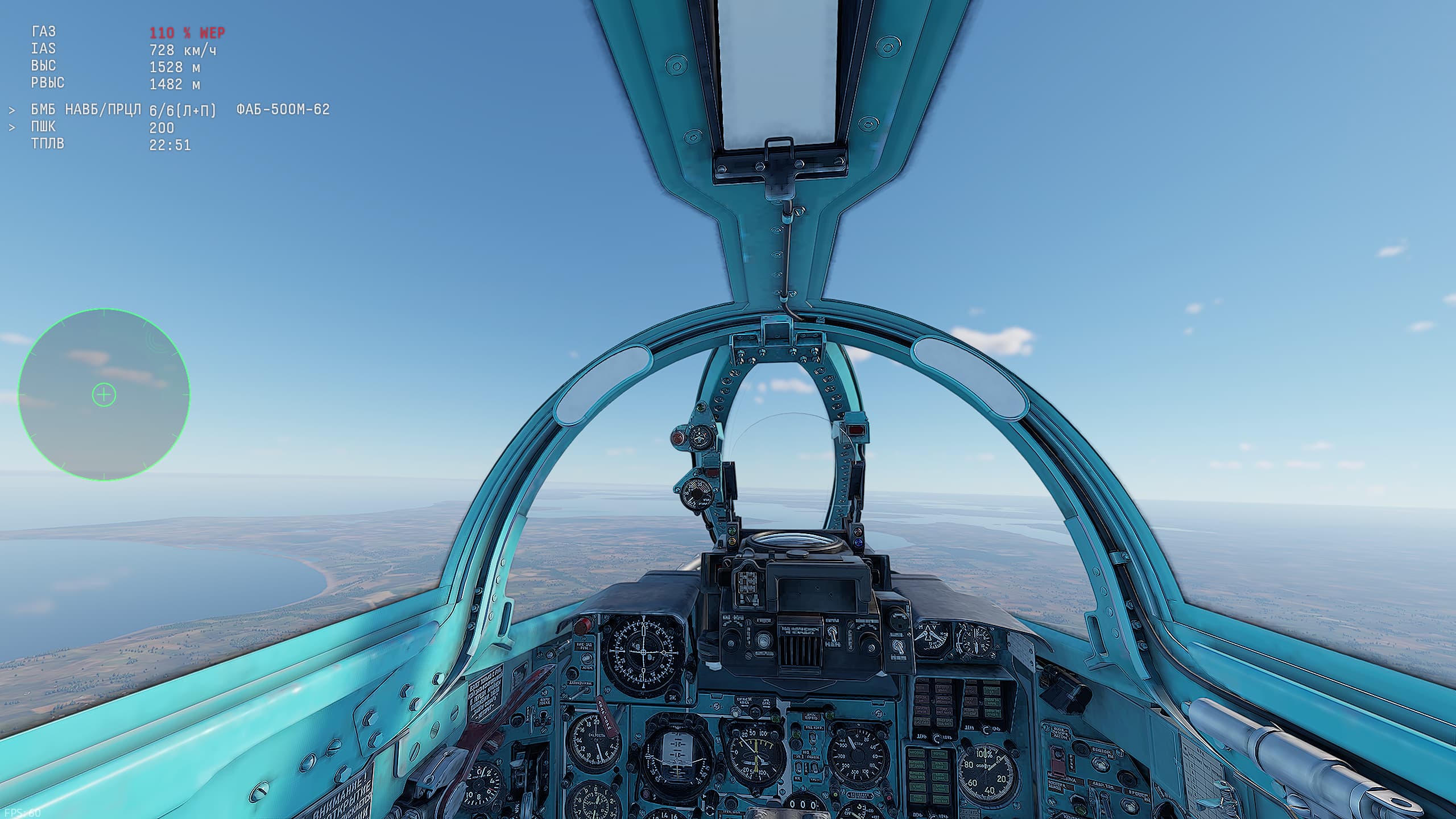 В кабине Су-24М в режиме SBотсутствует всякая индикация для режима бомбометания CCRP (бомбометание с вычисленной точкой сброса с горизонтального полёта). В данный момент: