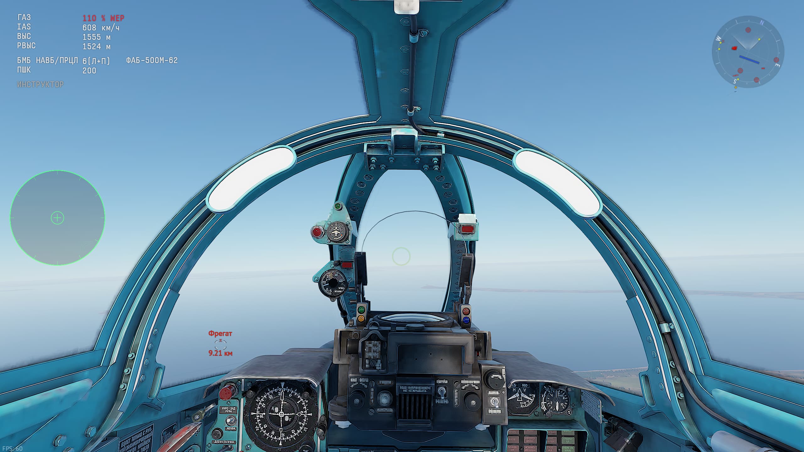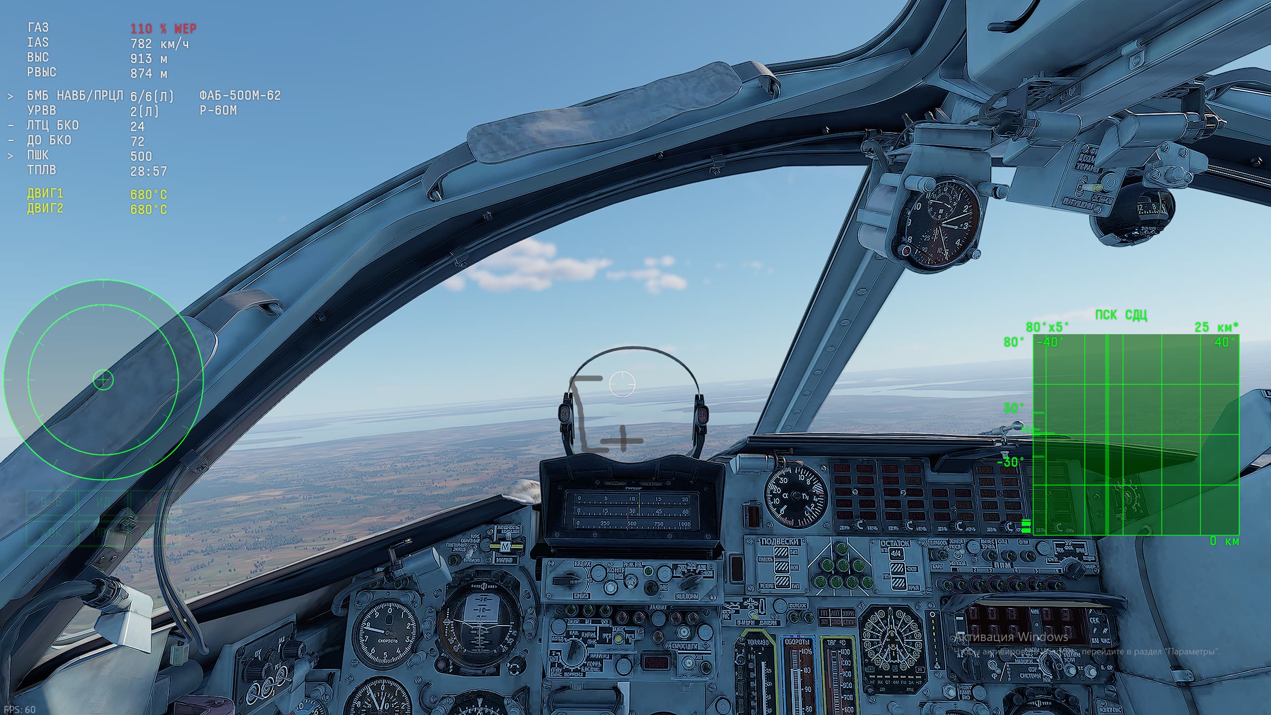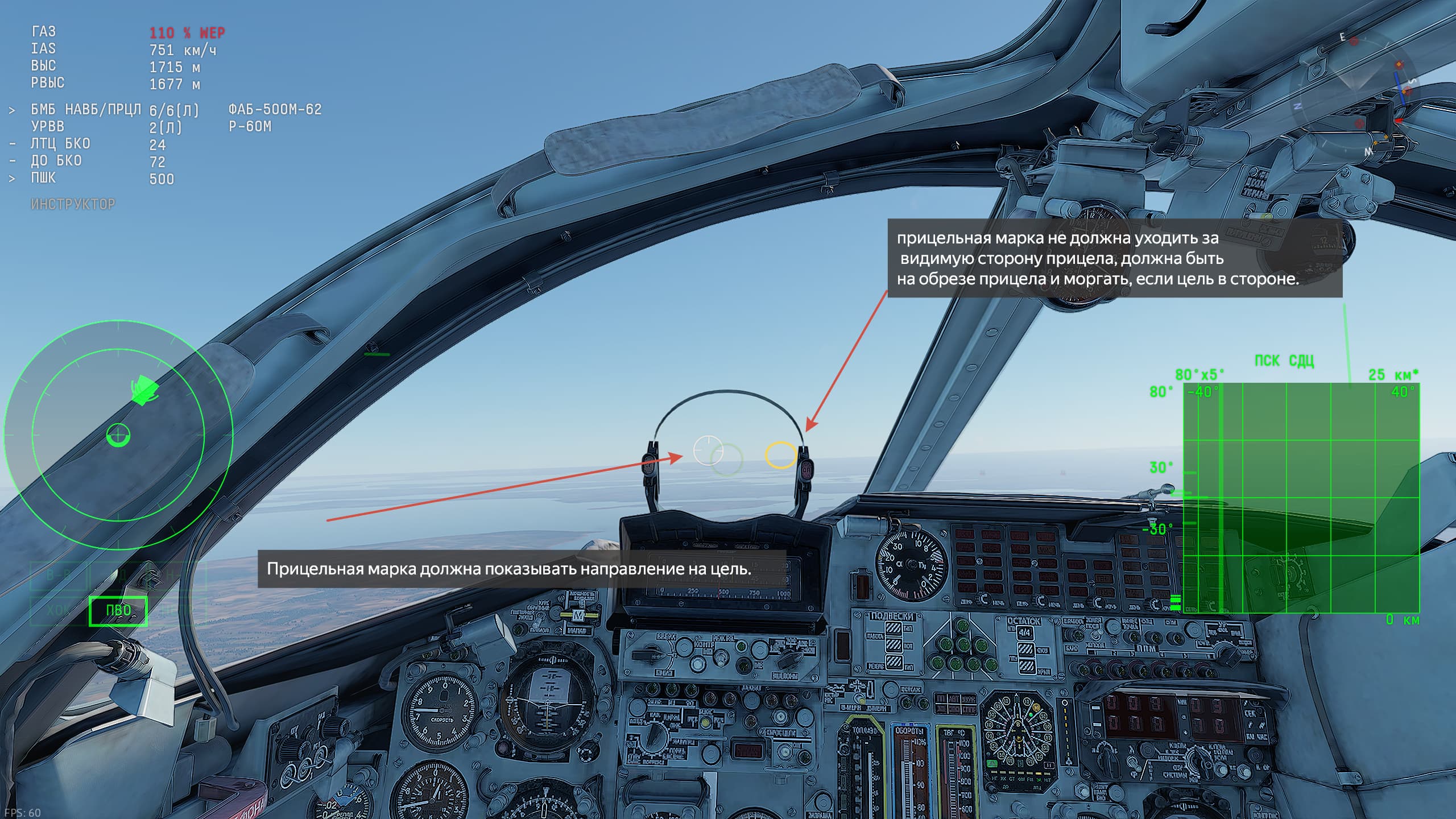 Проблема в том, что нельзя точно выдержать НАПРАВЛЕНИЕ на цель, т.к. нет индикации! Ты ориентируешься только по карте с жпской. Случилось чудо, но индикация в Су-24М появилась. Правда прицельная марка “висит” на какой то определенной высоте, скорее всего, на той высоте на которой ты активируешь навигационную точку. Хотя прицельная марка должна быть постоянно в прицеле.