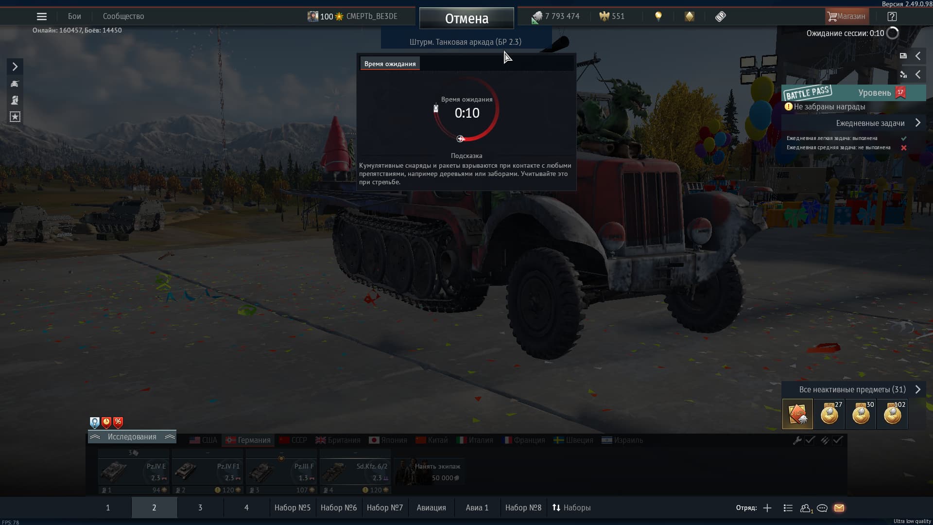 Хотел в танковый штурм зайти,а там только счетчик времени,а сколько игроков в очереди вообще не показывает.Кто в курсе это баг или это у меня проблемы?