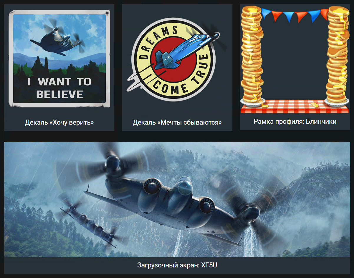 Обратите внимание: после открытия этапа вам нужно забрать награду вручную. Для этого нажмите на ваш профиль, выберите категорию «Мечты сбываются: XF5U» и нажмите «Забрать приз».