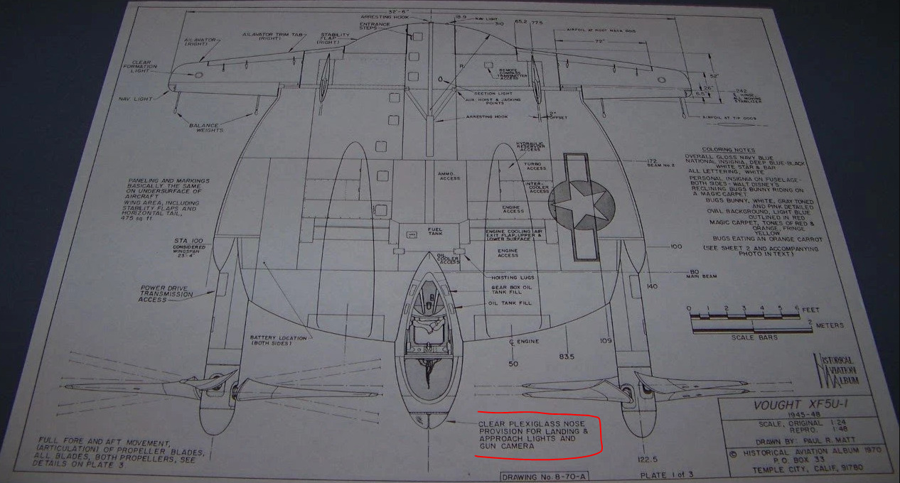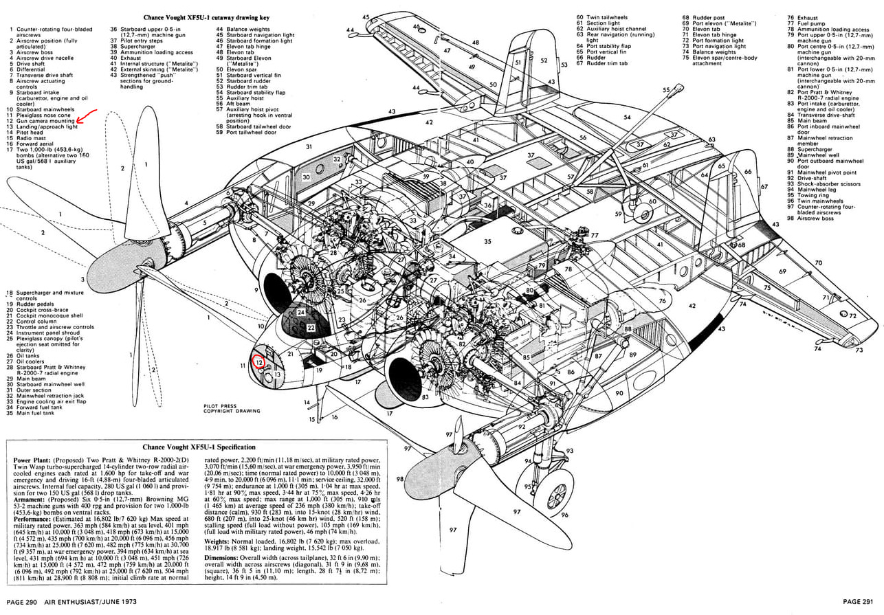 Источник, кстати, так себе. Он противоречит Preliminary Pilot’s Handbook Navy Model XF5U-1 Airplane, в котором только 1 топливный бак.