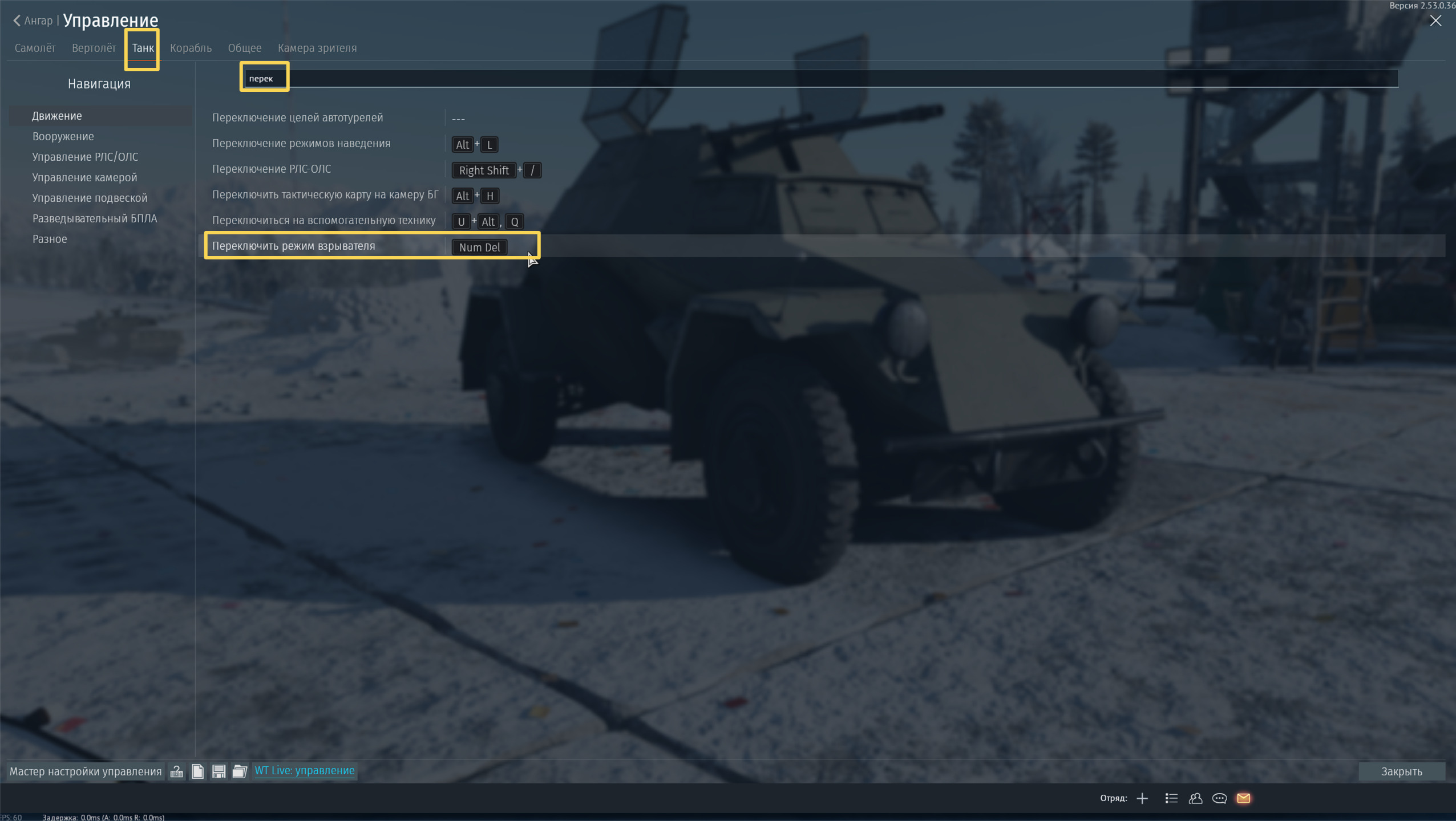 Ну в настройках управления танком, скрины не могу сейчас скинуть.