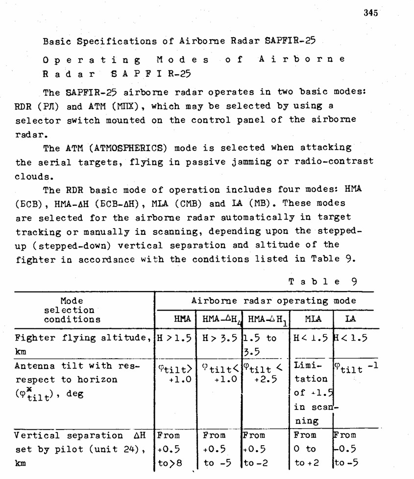 кстати, тут пишут, что режимы работы рлс переключаются автоматически только во время лока, а во время обзора можно переключаться вручную, то есть ближе к рлс миража ф1, чем к миг23 в плане выбора режимов рлс