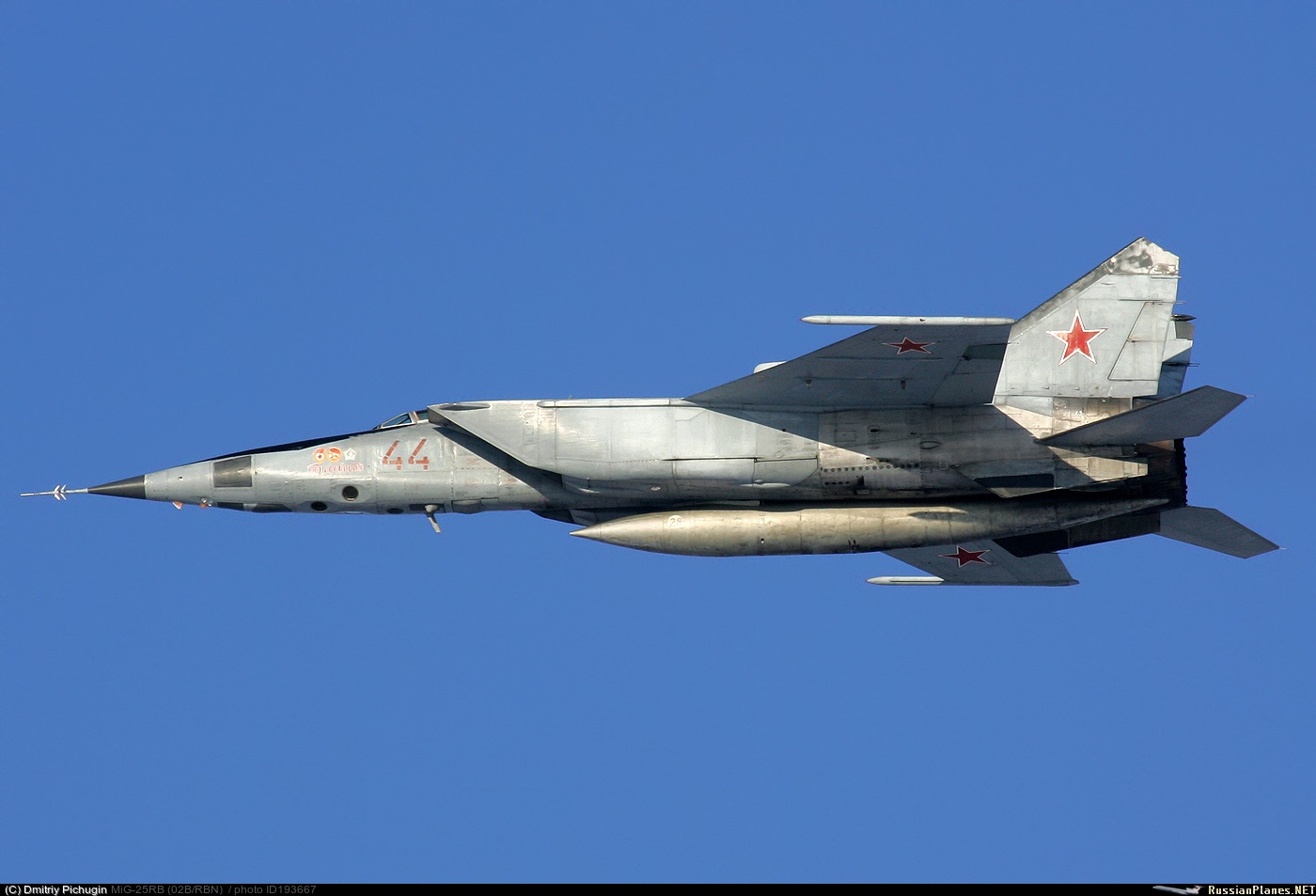 под фюзеляжем может нести конформный ПТБ на 5380 л (4370 кг, на всех модификациях кроме МиГ-25П).