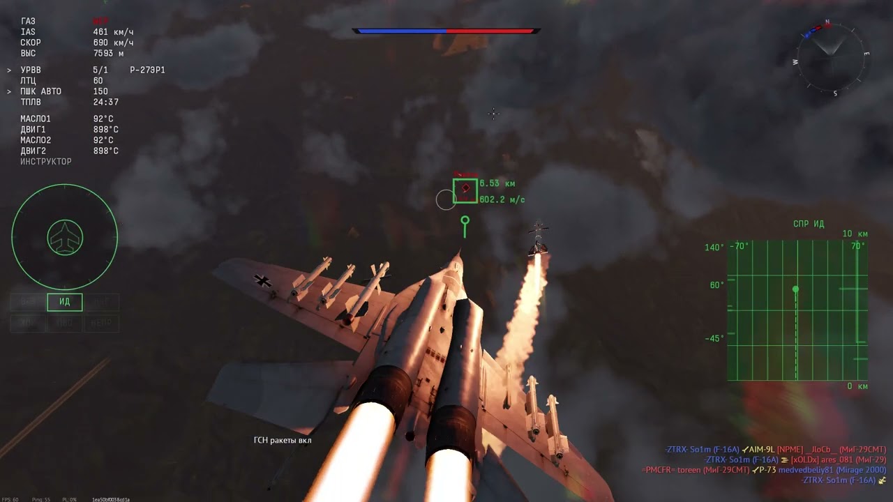Почему это Р27ЭР промазала ? Диполи не имеют силы против доплера, а также Р-27ЭР имеет защиту. Также диполи остались позади Ф16С. Он никак не мог укрыться за ними.