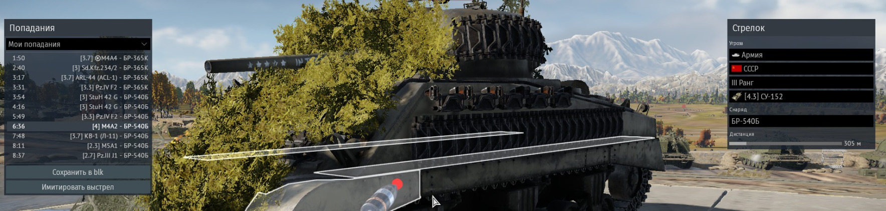 Снаряд пролетел шерман по диагонали, взорвавшись уже за ним. Видимо, всё то, что он встречал на своём пути, было недостаточно, чтобы взрыватель сработал.