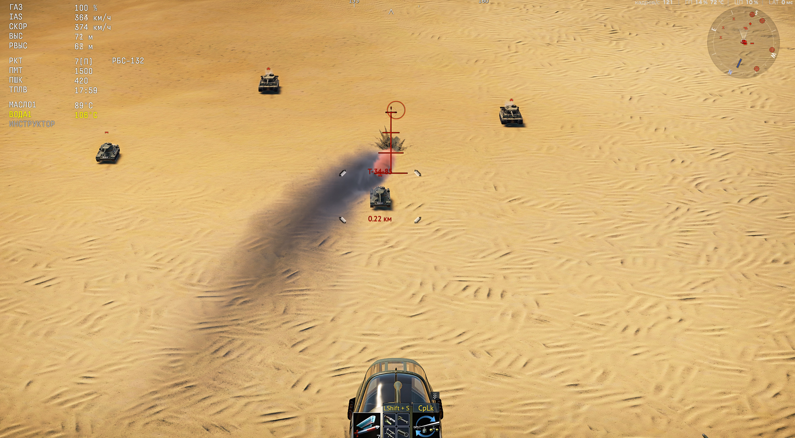 В данной ситуации, например, следует помнить что если ширина танка т-34 (у всех модификаций она одинакова) равняется половине самой длинной горизонтальной риски - значит, до цели ~200 метров и при скорости 370кмч и и угле пикирования около 30градусов (типичный заход для ил-2) цель следует помещать примерно гусеницами на третью горизонтальную риску. Так же следует помнить, с какого крыла будет пущена следующая ракета. Ну и надо понимать что данные ракеты не предназначены для снайперского поражения одиночной ракетой одиночной цели. Все НУРСы предназначены для залповой стрельбы “куда-то туда”. Ну а дальше - практика, практика, практика. Для начала я бы тебе, все же, рекомендовал использовать фугасные ракеты, и искать цели с открытыми рубками. Все.