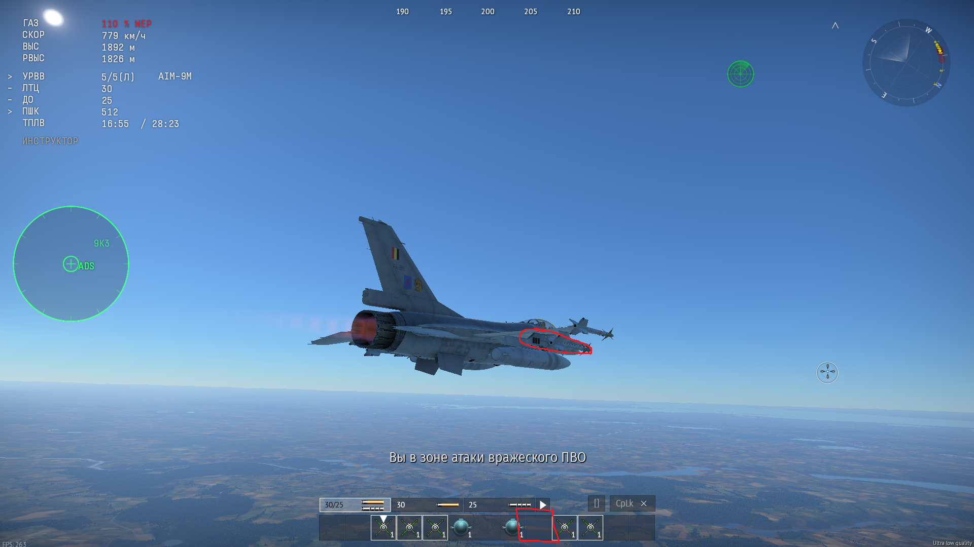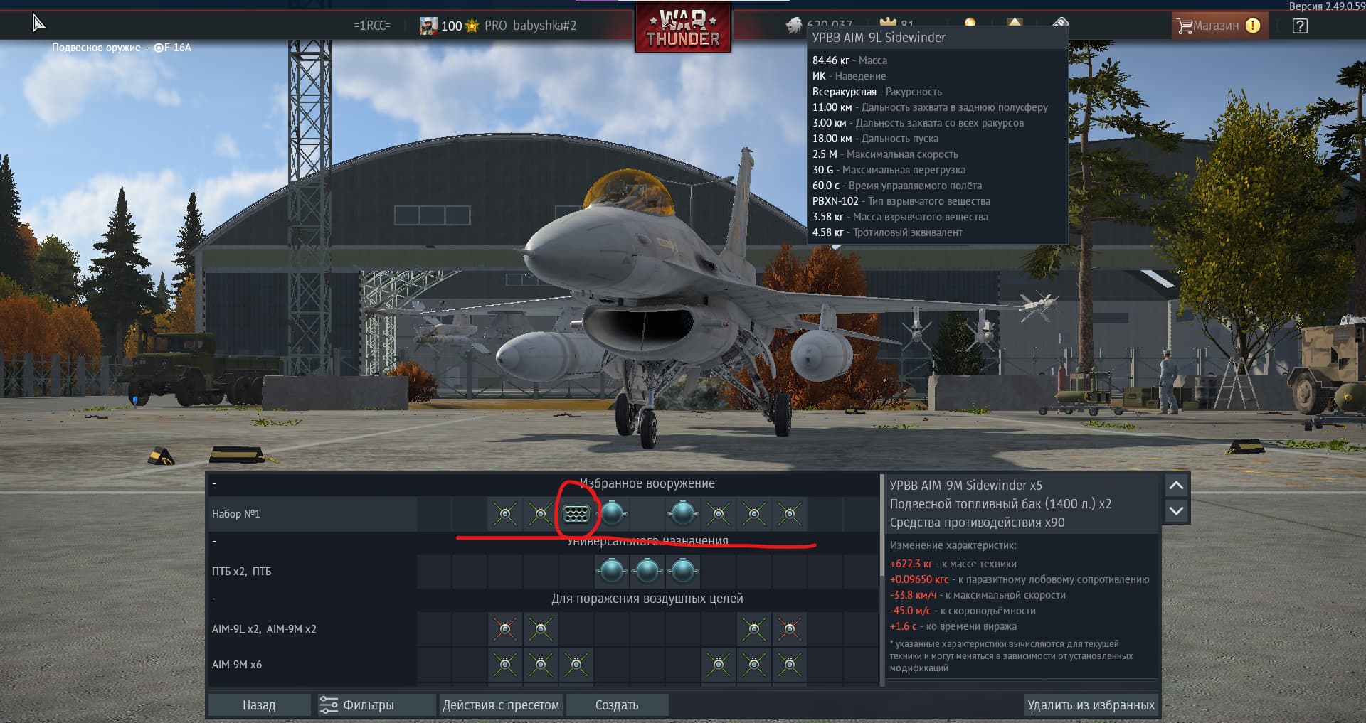 при выборе определённой комплектации вооружения и установки подвесного контейнера с СПД. Он просто не отображается не в бою, не при подготтовке к бою, но при всё при этом на самолёте он отображается. Но никак использовать его нельзя