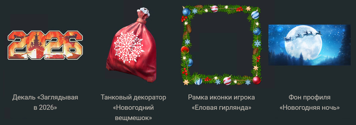 По славной традиции во внутриигровом магазине предметов вас ждёт Новогодний ящик, который можно приобрести за Золотые орлы. Он содержит множество полезных вещей: Премиум-аккаунт, Серебряные львы, универсальные дублёры и усилители, премиумную технику, а также всю технику, которая когда-либо продавалась за Золотые орлы или Военные облигации, но не продаётся сейчас ни в игре, ни на бирже (список ниже).