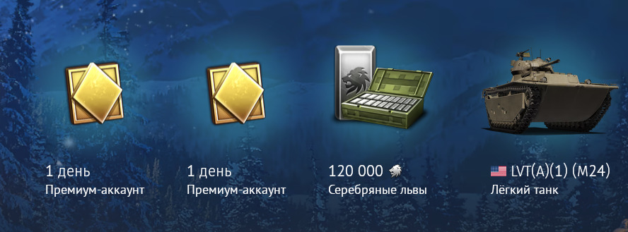 Гарантированный приз: 1 день Премиум-аккаунта + 120000 Серебряных львов (суммарной стоимостью 490 Золотых орлов)