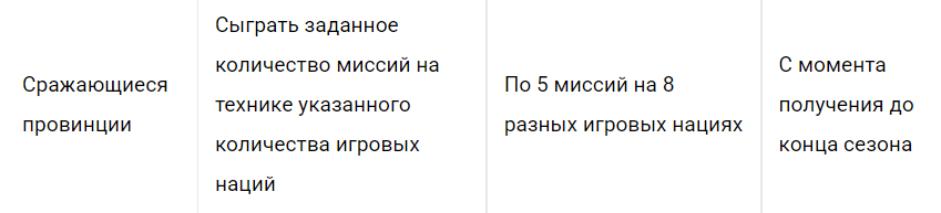 - Дополнительный заработок очков пропуска за все время сезона. Вам изначально доступны все 167 заданий, разделенные по группам. Играя на технике, вы выполняете все комбинации, под которые подходит выбранная техника.
