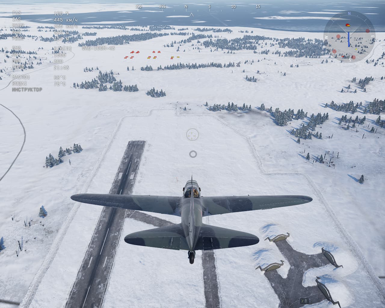 В виде от третьего лица нет возможности воспользоваться ориентирами, которыми пользовались пилоты в реальной жизни, а вида из кабины нет в минимальном клиенте игры. К тому же, переключение в вид из кабины, даже со стандартным клиентом, неудобно.