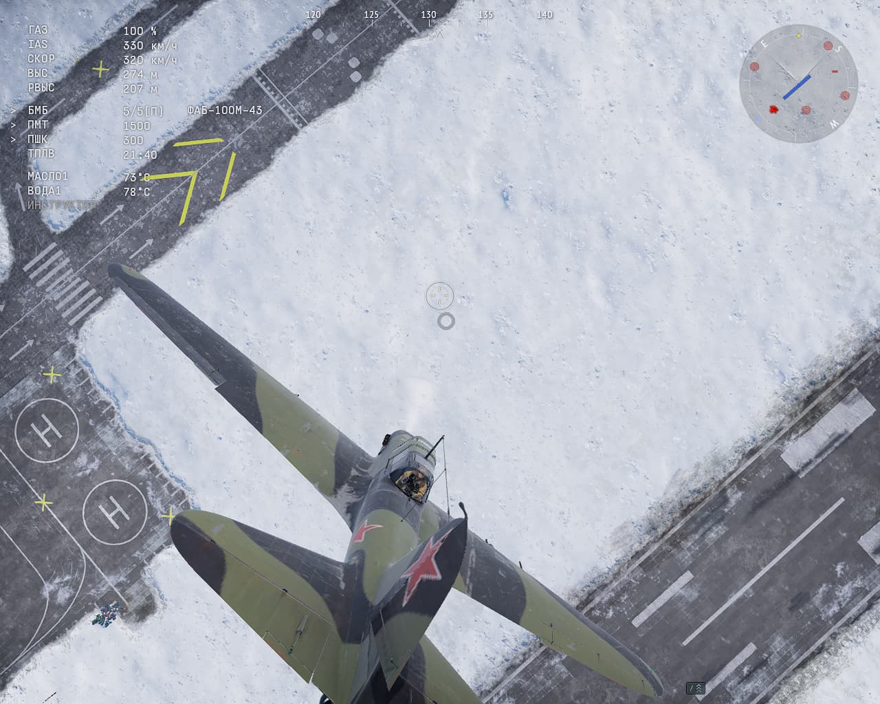 Я предлагаю добавить новый прицел для авиации в реалистичных боях в виде от третьего лица. Он будет отличаться от того, что имеется в аркадных боях: вместо того, чтобы показывать точное место, куда упадёт бомба, он будет лишь показывать куда он должен полететь, наподобии тех прицелов, которые мы имеем для стрельбы ракетами, курсовым и турельным вооружением.