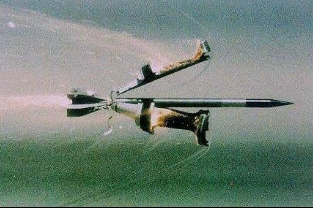 Выглядит так. Я думаю это просто фото снаряда с типо демонстрацией, как оно будет в полете. Слишком аккуратно подобран кадр, стабилизаторы разлетаются слишком стерильно. Реальные фото все же иначе выглядят