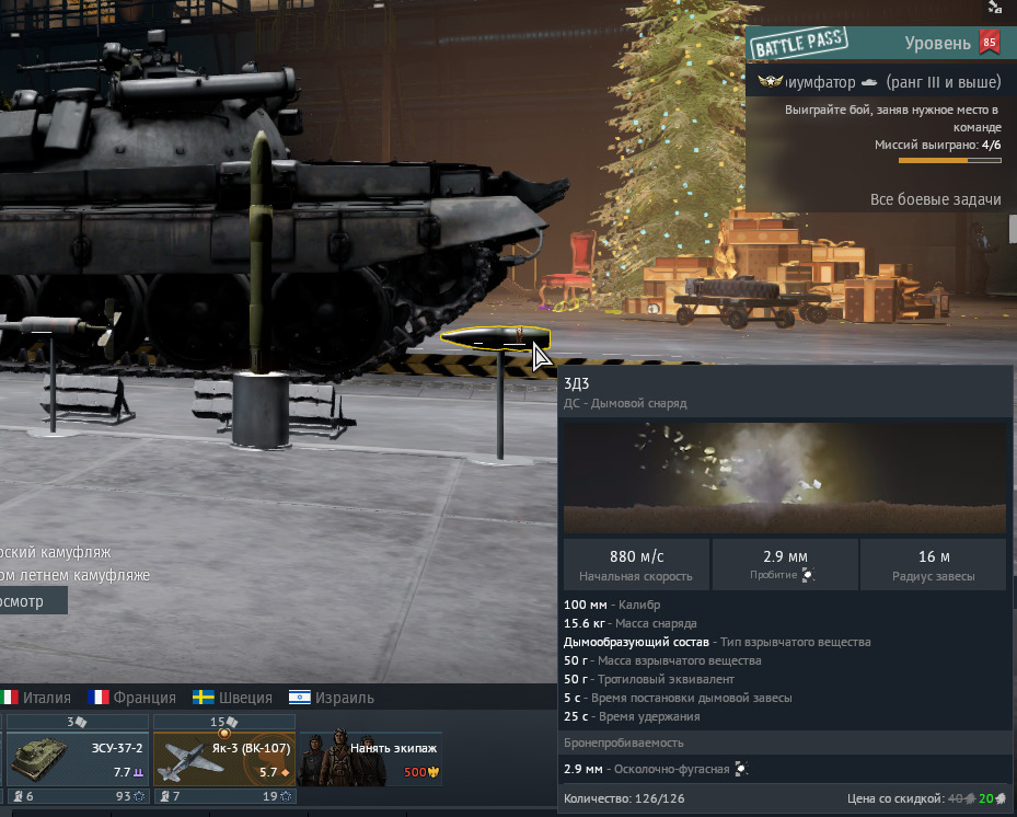 Исправлена ошибка, из-за которой у некоторых БФС (HESH) снарядов в ангаре отсутствовала плита, демонстрирующая пробиваемую броню.