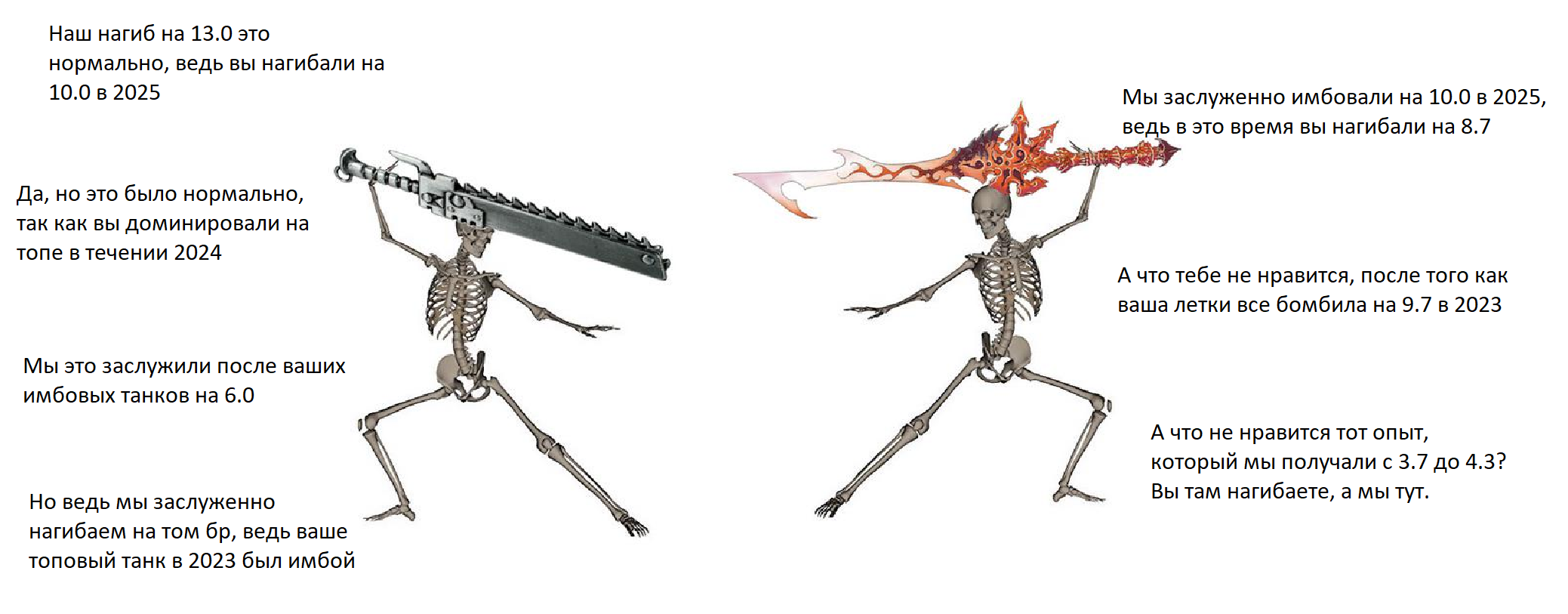меня больше забавляет, что сейчас люди говорят уже даже не “да не имба, все в балансе”, а все аргументы сводятся к “ну раньше вот меликанцы имбовали, теперь вот пора советам”