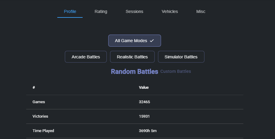 С помощью иных ресурсов по сбору данных таких как Statshark вы можете узнать общее время в боях, а так же в отдельном игровом режиме и даже в полигоне.
