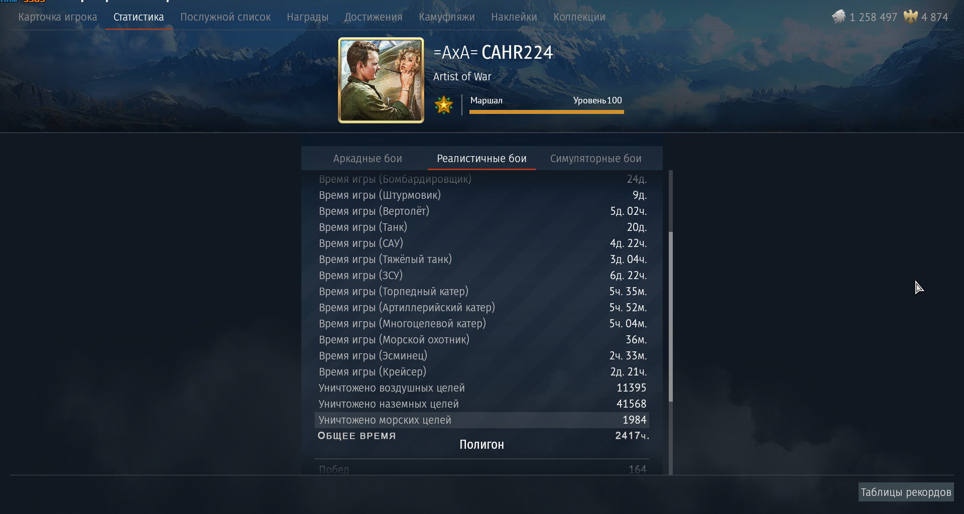 Именно поэтому у нас есть отображение времени, приведённого в боях, и даже достижения на 1к часов в бою, ага.