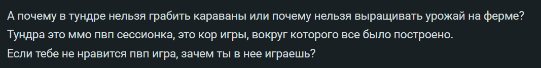 Никто не говорит, что основной контент тундры не про ПВП. Но нигде не написано ведь, что тундра как и ММО в целом - исключительно про ПВП, так ведь?