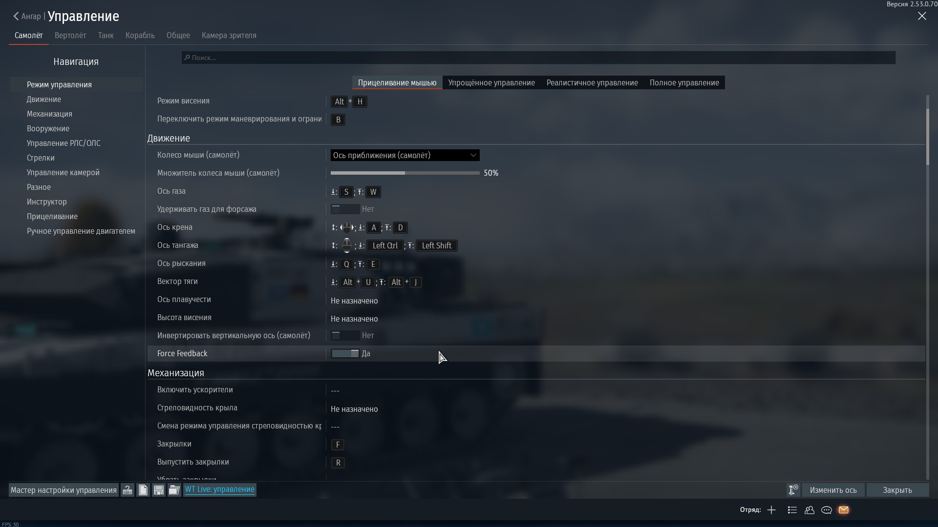 Хочу отключить мышь от управления креном на самолете но никак не могу это сделать