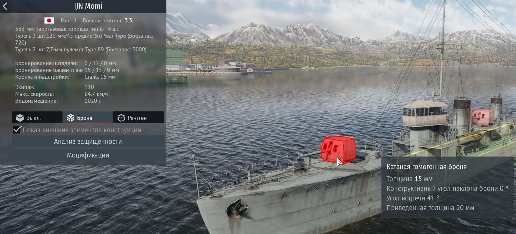 Отсутствует бронирование башен ГК у фрегата Chidori