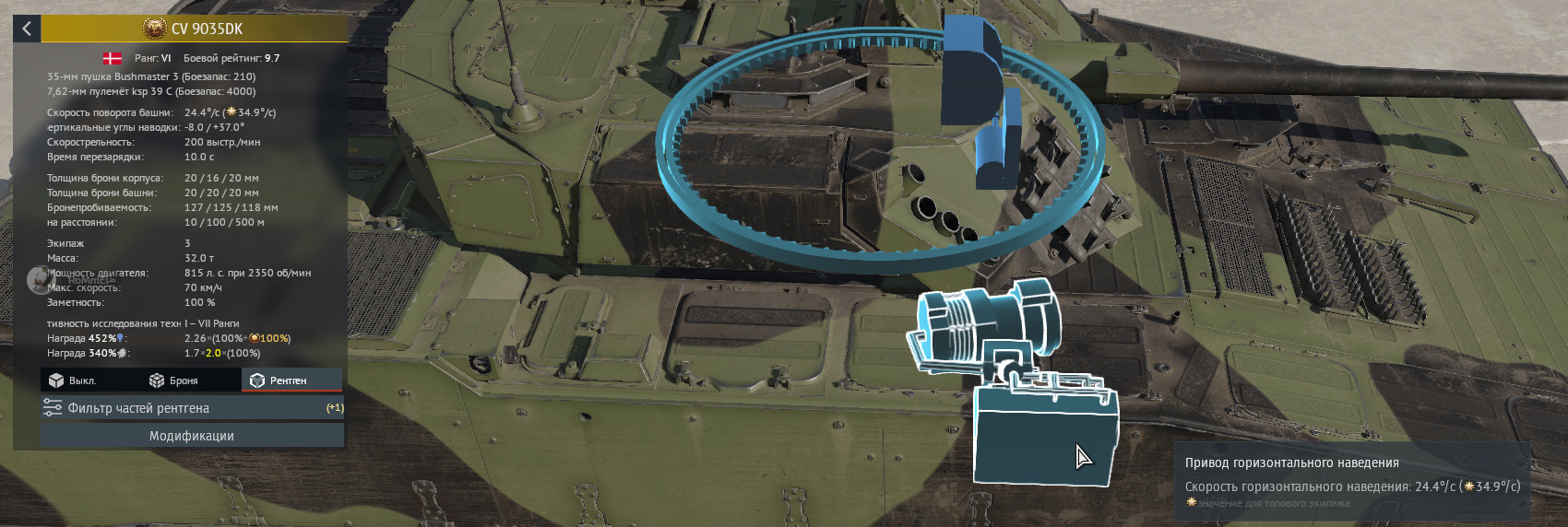 Это единственный и не повторимый танк в игре с аж двумя отдельными приводами горизонтального наведения. Вопрос такой, а на что влияет второй привода? Углов наведения у него нет, покупать танк для проверки в полигоне я не стану