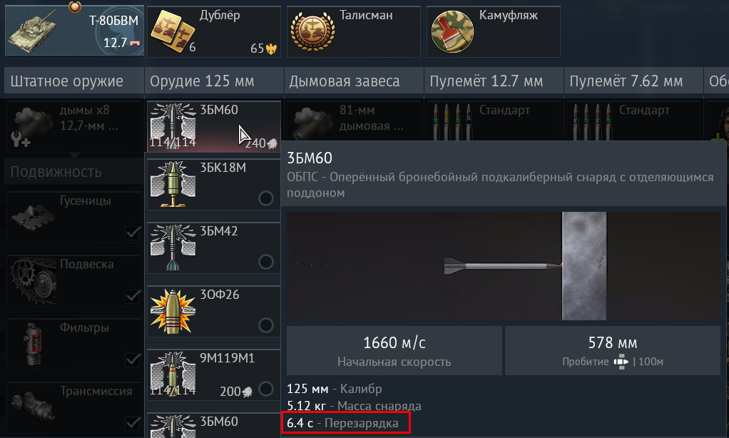 А почему у Т-80Б перезарядка с 6.5 с превратилась в 7.0 с , если по таблице она должна была стать 6.0 с ???