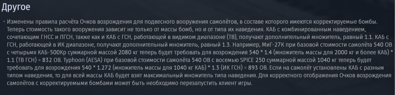 прошлый патч некому не мешали а тут вдруг стали мешать а может проблема в новых носителях? могли сделать как сделали с рафалем су 34 и су 30 только им повысить очки на респ, а теперь что мы имеем тв кабы сейчас в игре иногда захват еле с 3 км хватают, адекватные ик кабы только спайсы и у китайцев ls6 новые