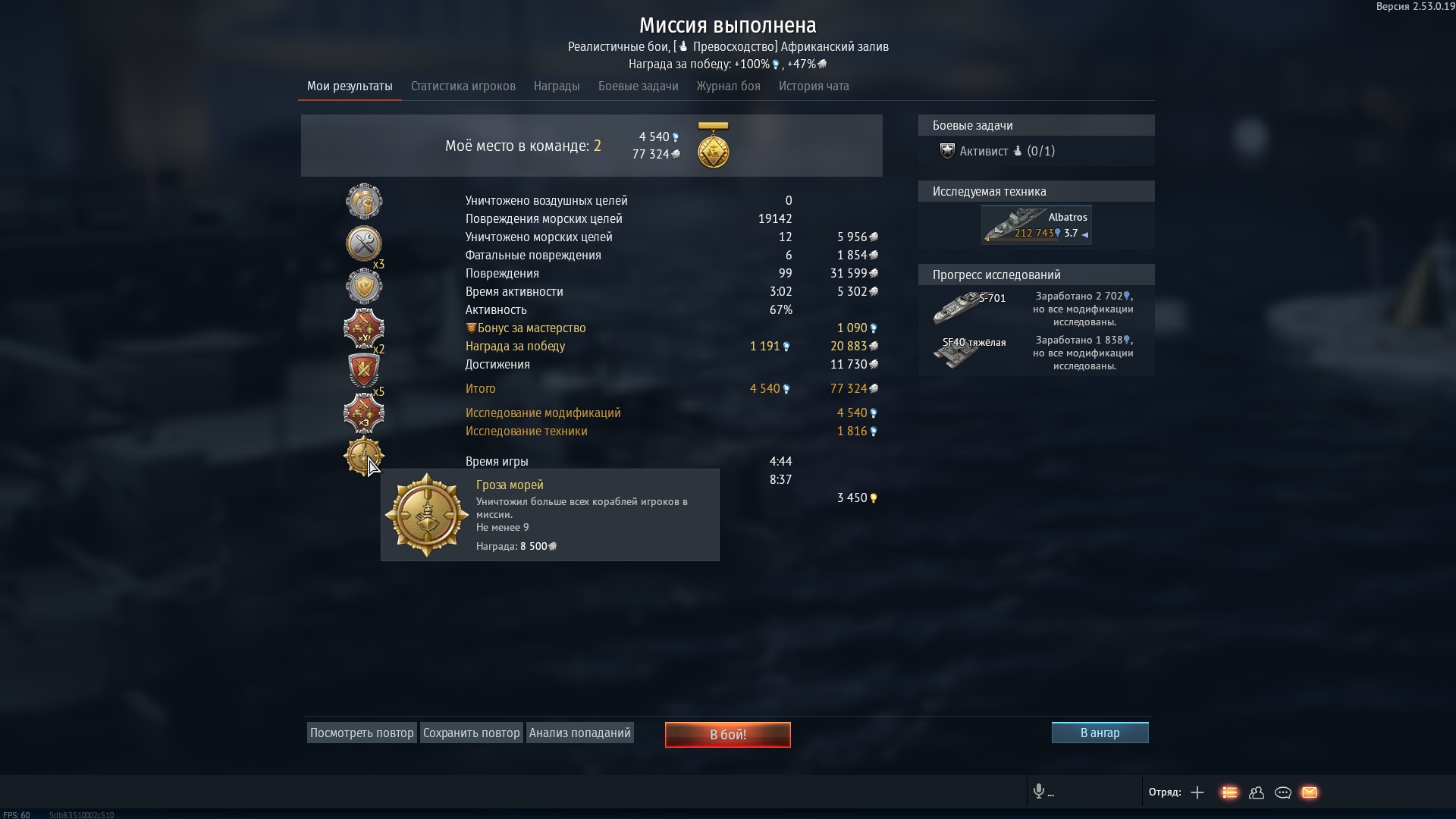 награда “гроза морей”