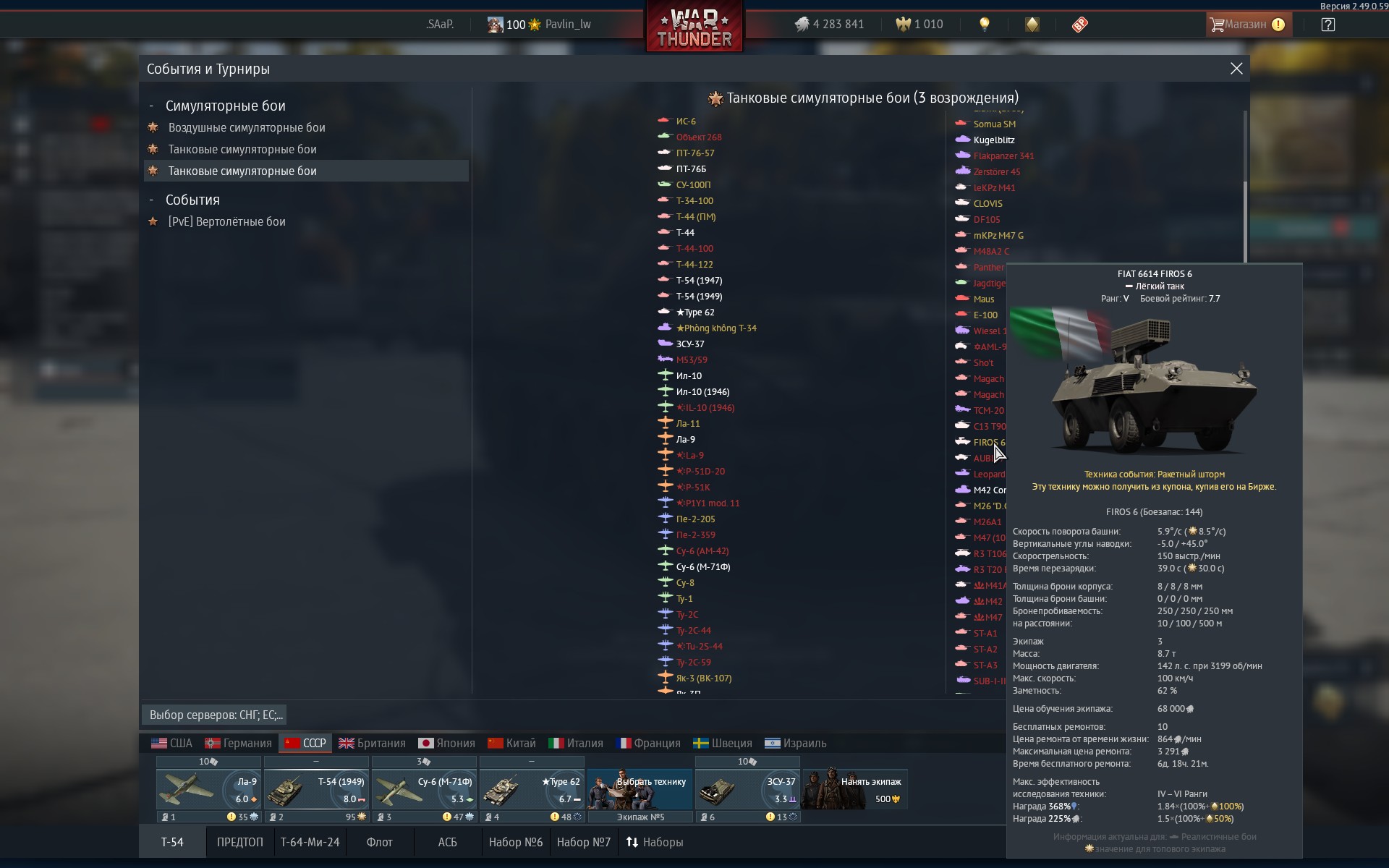 Но при этом, нововведенный китайский WZ141-1 (БР 6.7, аж на 1.0 ниже) отсутствует… Огневая мощь и защищенность у этих машин сходная (не считая опять-же FIROS), но при этом WZ явно отстает по подвижности (соответственно, по общей боевой эффективности). Может, стоит его также добавить в этот сетап?