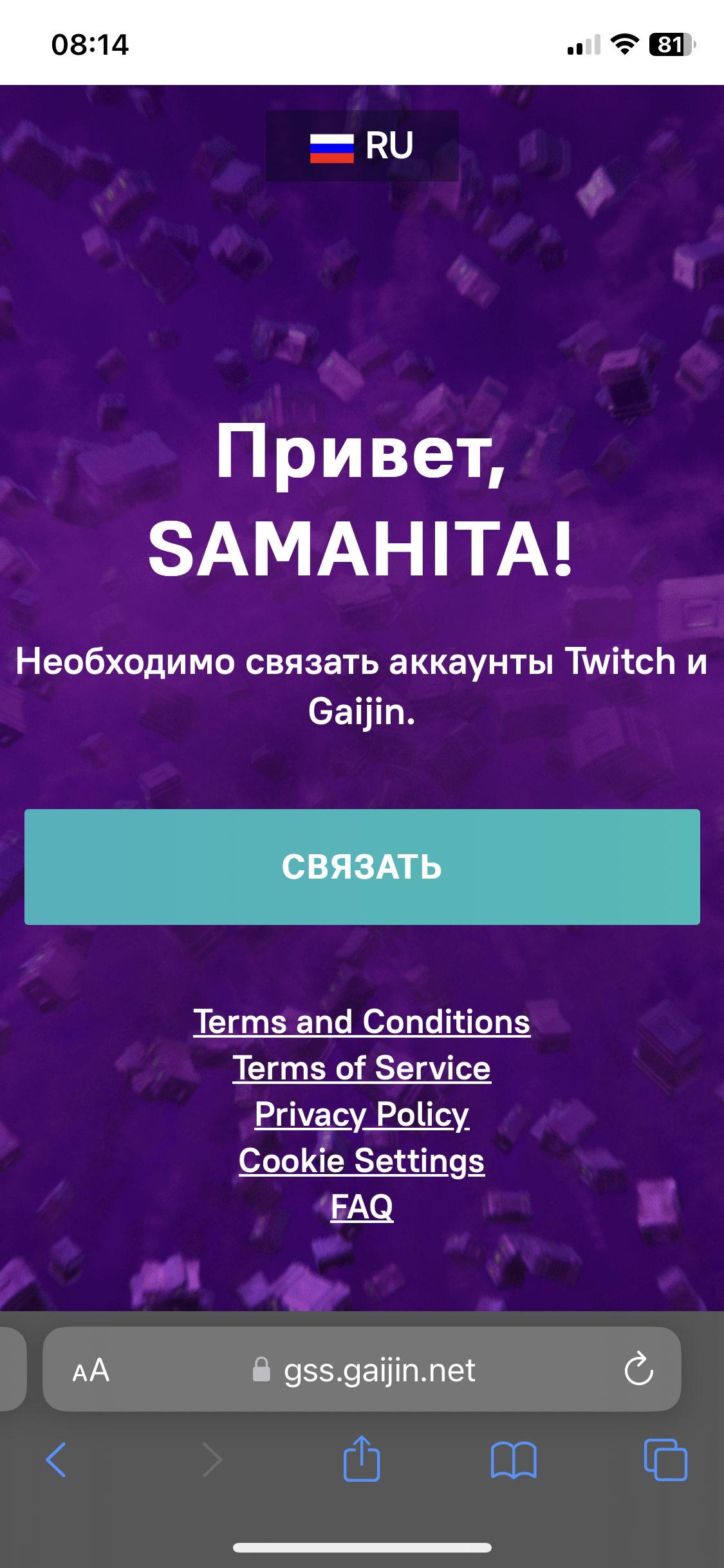 Подскажите пожалуйста, аккаунт расположен на Глобал, не получается по какой то причине связать аккаунт твич и гайджин, выдает ошибку «500 Internal Server Error».