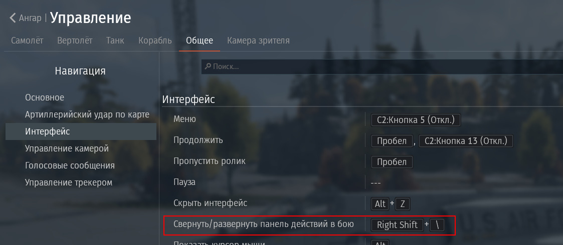 “Настройки управления - общие - интерфейс - свернуть\развернуть панель действий в бою”