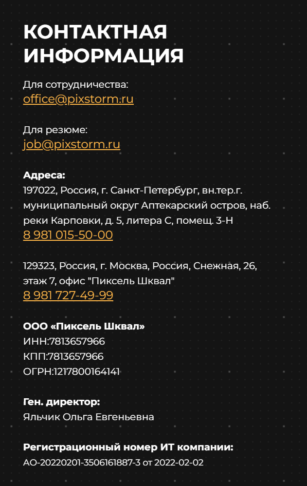 “Pixel Storm” и “ПИКСЕЛЬ ТЕКНОЛОДЖИЗ” - разные компании.