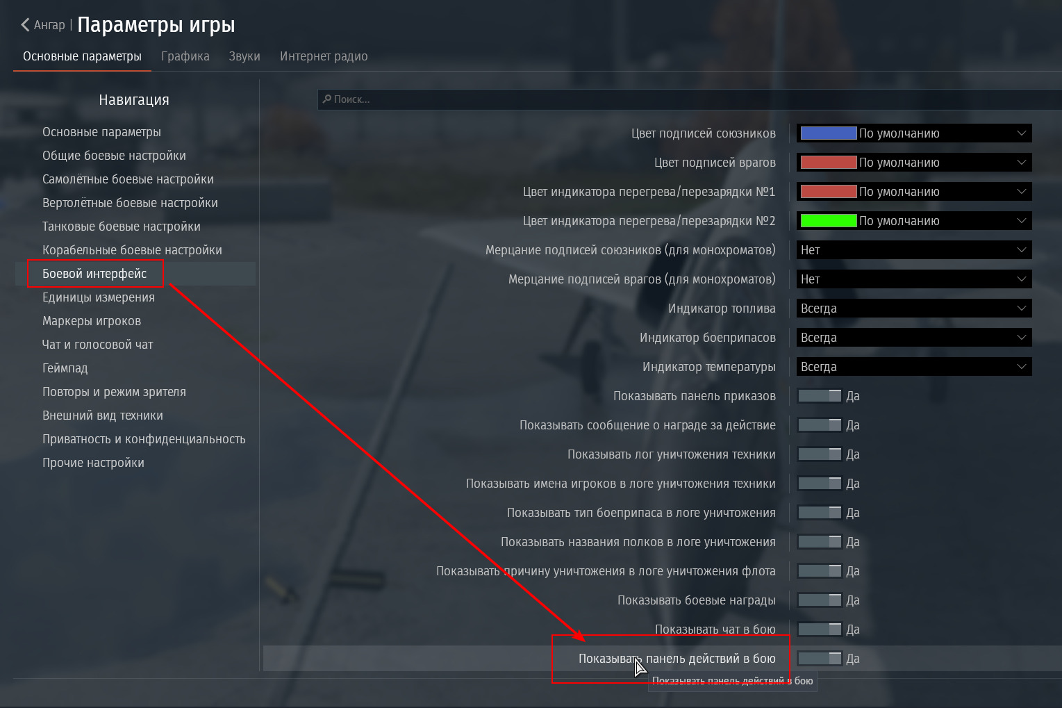 А еще возможно в настройках боевого интерфейса у вас панель действий выключена, для этого зайдите в “настройки - боевой интерфейс - показывать панель действий в бою” и переключите ползунок если он в неактивном положении.