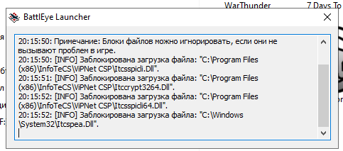 здравствуйте. есть такая проблема. программа vipnetclient используется для работы. (удаленный доступ). раньше тоже периодически эти окна вылезали. но игра запускалась. периодически этого окна небыло. сейчас вообще не запускается. на форуме написано проверить антивирусом комп. вирусов нет. как лечить это дело?