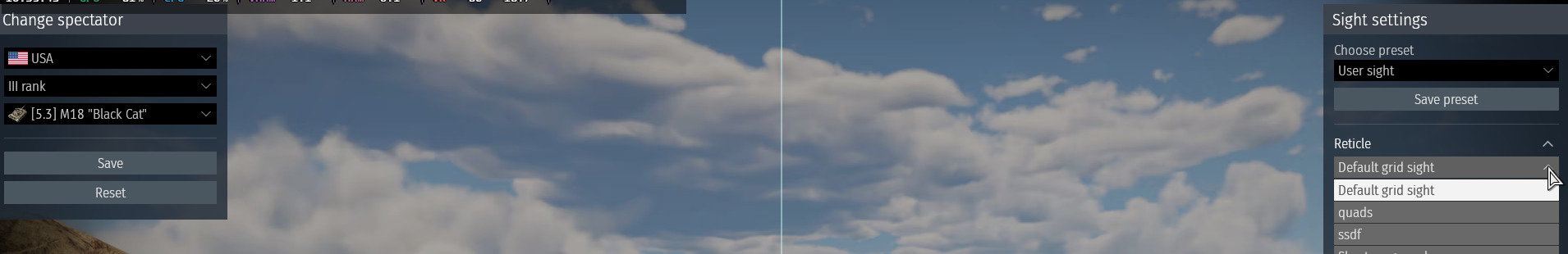 Я пользуюсь сетками по схеме с указанием юнитов файле. Создаю файл сетки production/UserSights/all_tanks/ssdf.blk, в его заголовке перечисляю танки, для которых он применим, например, пара М18 за американских