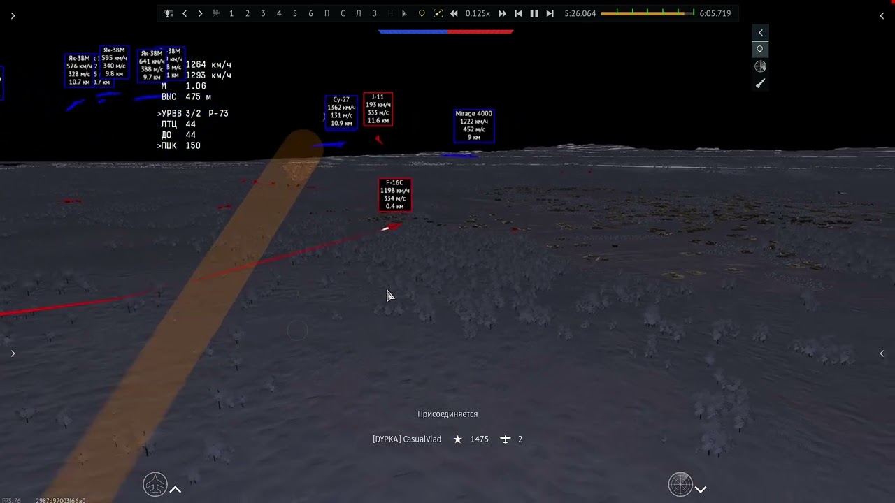 Если брать телеметрию, ситуация не поменяется, ракета все время поворачивает и берёт слишком большой угол упреждения на цель, и там не только 12 градусов, но и 21 и т.д, и в итоге ракета начинает лететь перпендикулярно цели в землю.