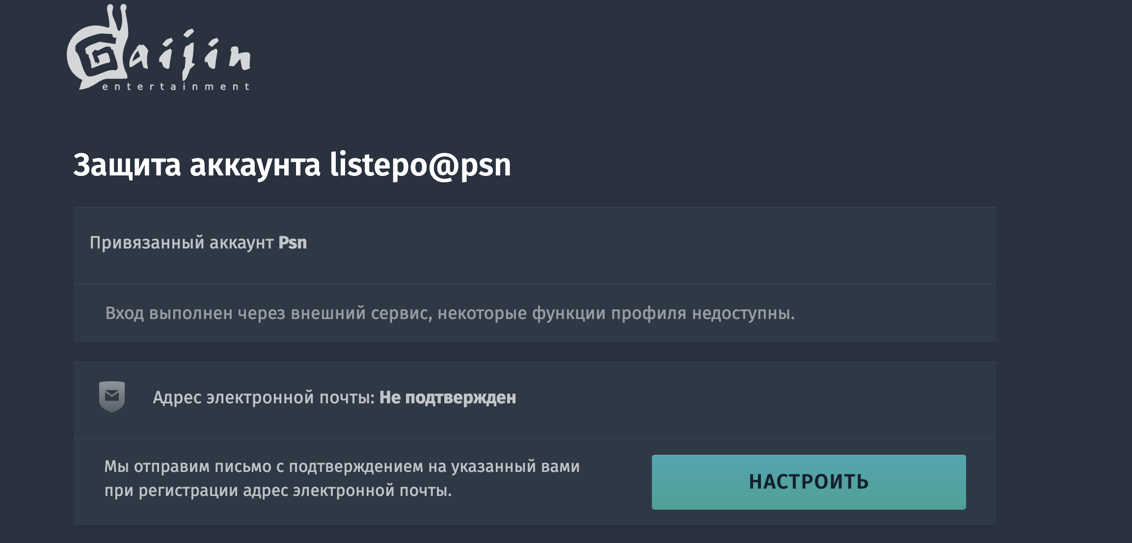Если вы еще не привязали электронное письмо к своей учетной записи console War Thunder