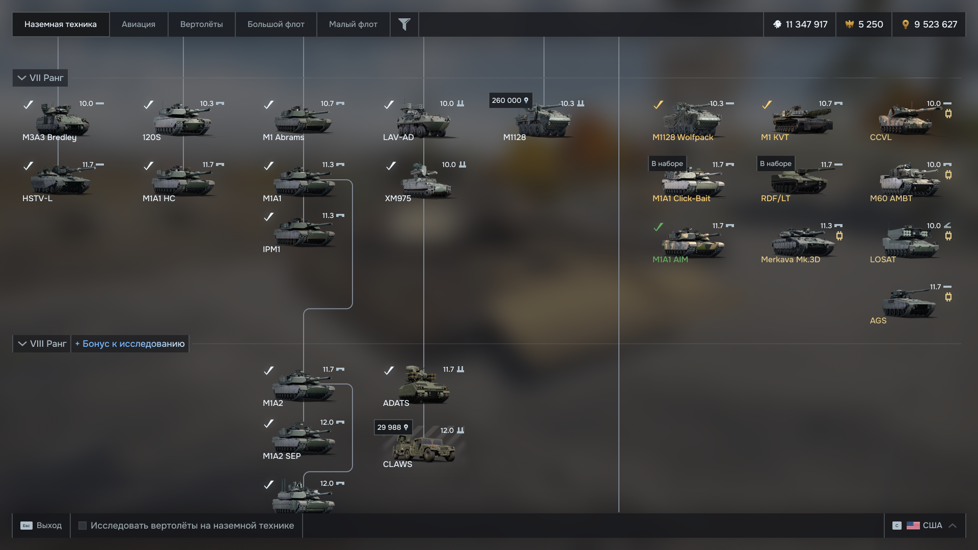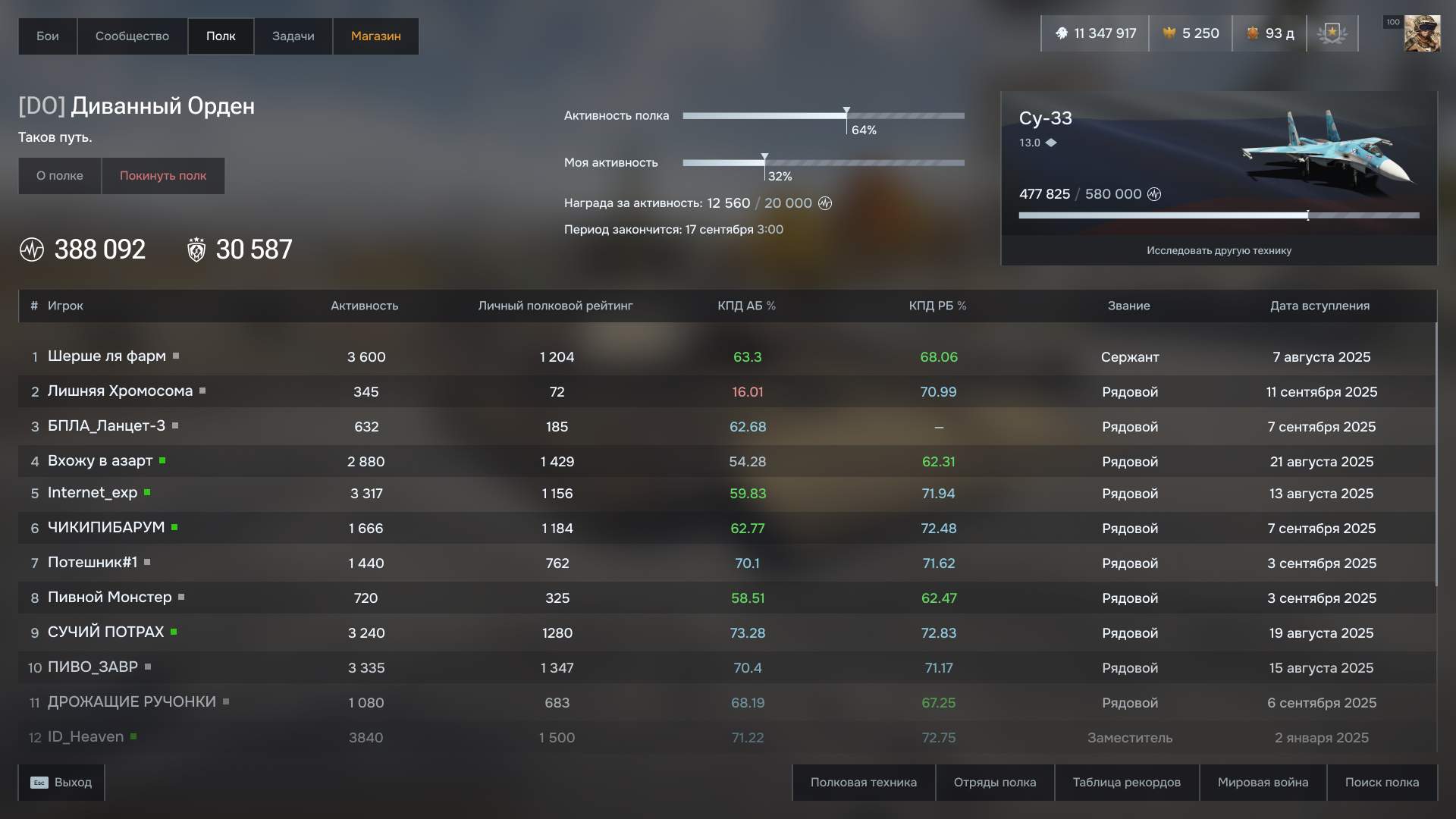 Следить за прогрессом исследования и менять технику теперь можно на главном экране полка. Выведены показатели активности. Убрано множество фоновой информации о полке.