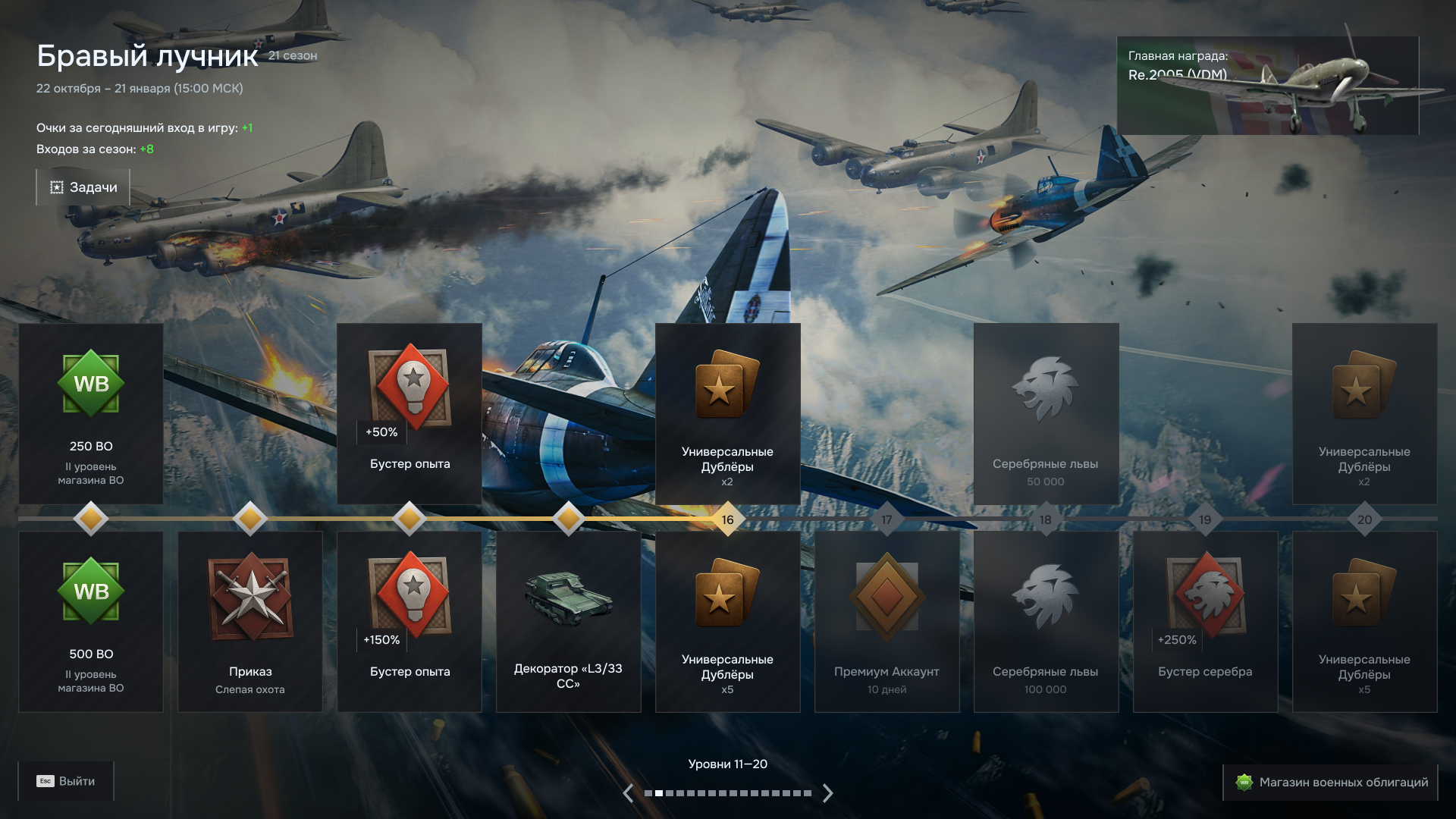 Привёл в порядок боевой пропуск, теперь он с адекватной сюжеткой и, как подобает пропуску с бесплатными наградами, стал двухъярусным.