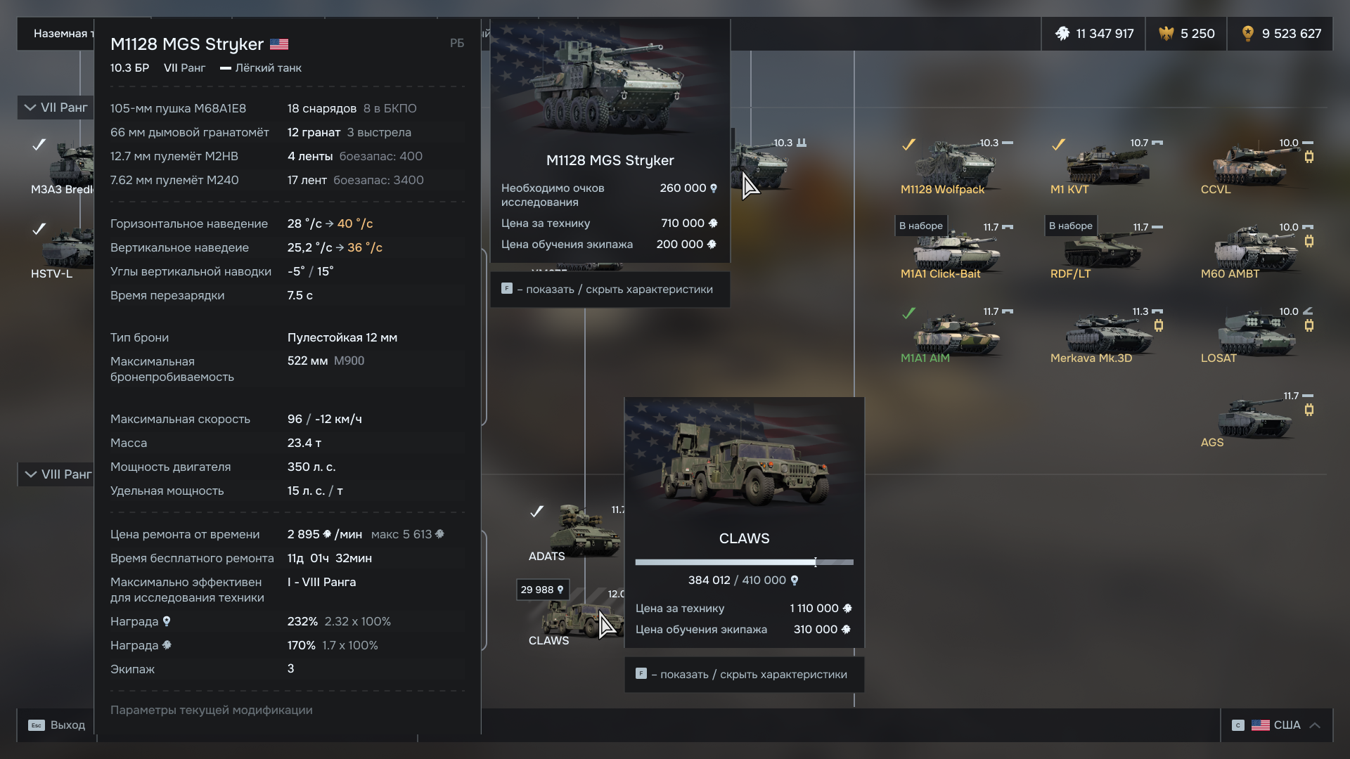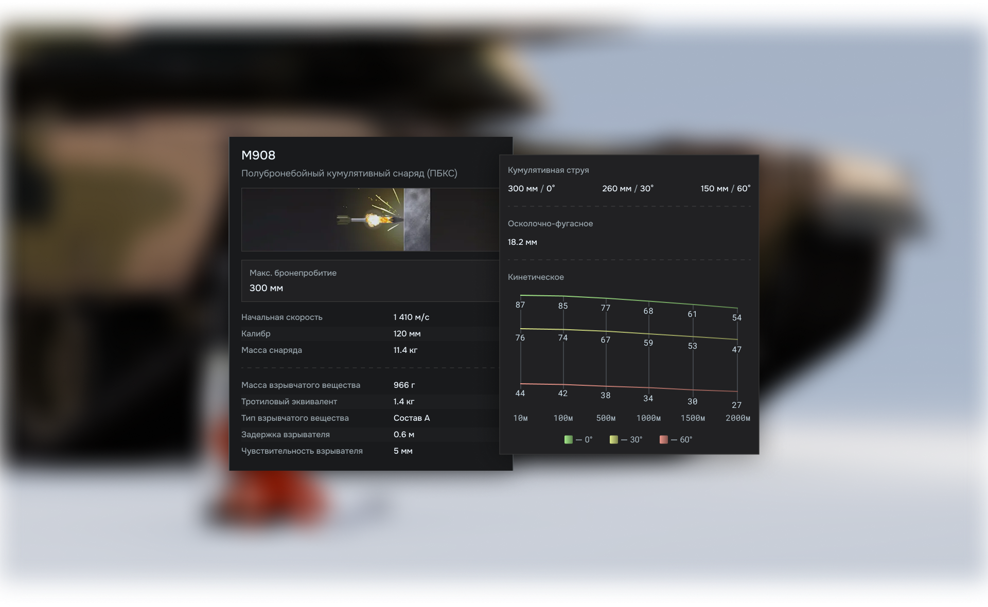 Таблица и график бронепробития были вынесены на второй уровень взаимодействия (по наведению на макс бронепробитие). Это поможет игрокам не отвлекаться на анализ побочных данных.