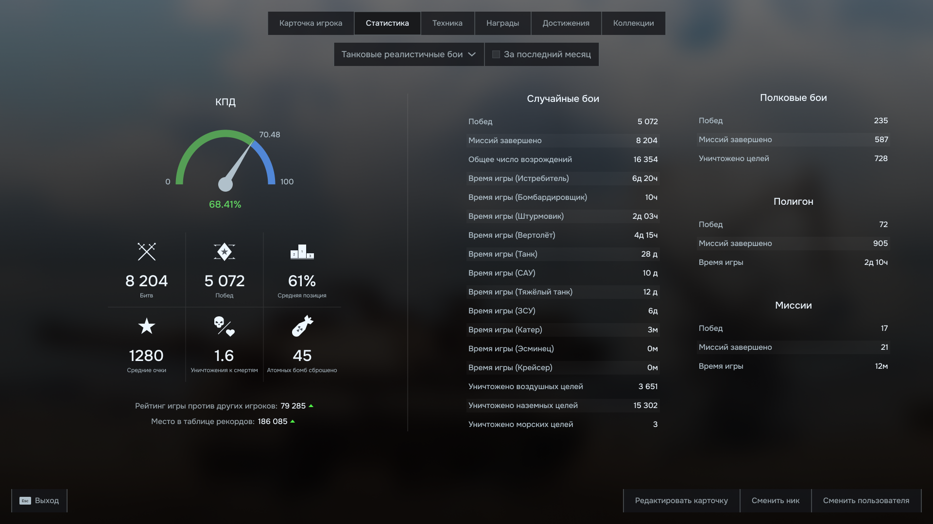 Дополнена статистика и улучшена вёрстка профиля. Здесь глобальных изменения я не вводил.
