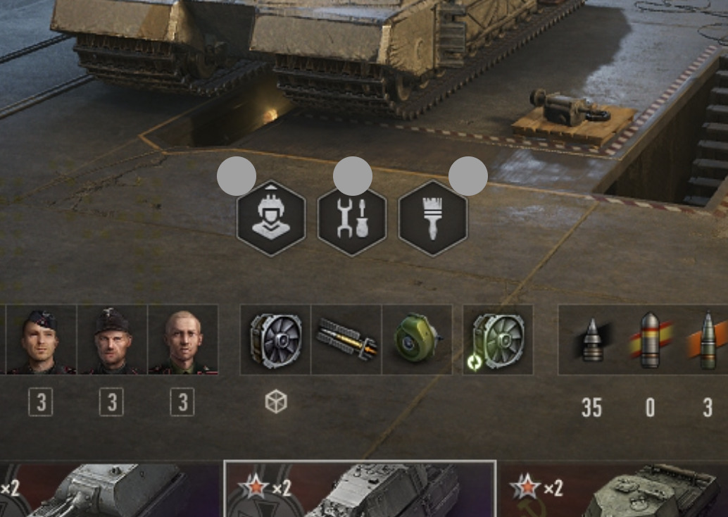 Решение: вынос всех функций с техникой (модификации, экипажа, бк, оформления и анализа защищенности) в единое меню в первый контур взаимодействия, чтобы обеспечить к ним максимально быстрый и очевидный доступ.