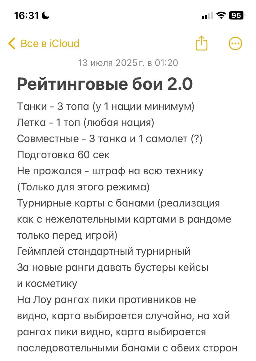 Техническая часть особенно умиляет. “Не требует создания сложной механики”. Ага, просто взять и собрать из говна и палок новый ранговый режим, пока нельзя починить лобовое стекло на полуторке. “Механизм запрета техники уже есть” — он и в рандоме-то не работает, но в рейтинге, конечно, заработает. Система запретов карт… та, что в “предпочтительных миссиях” сломана уже года три? Отличная основа!
