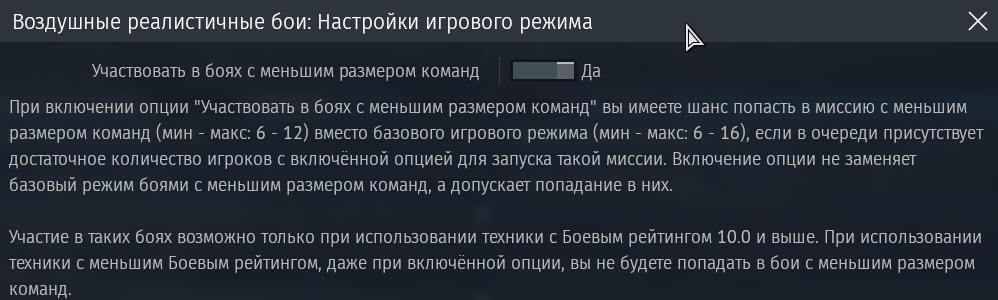 У нас на 7 ранге, где в поиске было 300 человек, создавало бои 6 на 6, 8 на 8. Онлайна хватало для 16 на 16, но что-то не давало.