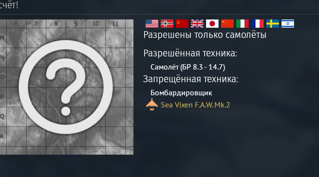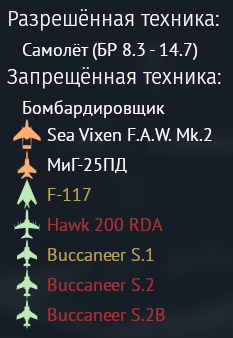 - Минимальный БР снижен c 12.7 до 8.3, что открывает вам более широкий выбор самолётов. Самолёты без пушек использовать нельзя.