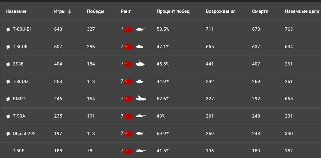 Твоя статистика даже кричит об этом, что БМПТ не место на 10.7, ни на одном танке 7 ранга, у тебя нет и близкого результата как на БМПТ.