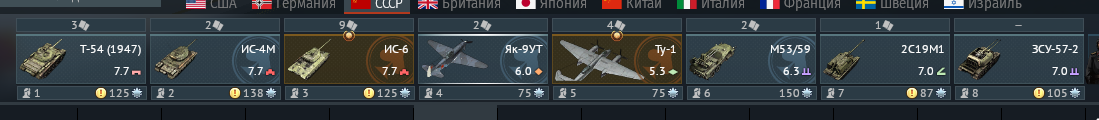 у советов наверное на каждый бр можно собрать сетап из 2х и более танков