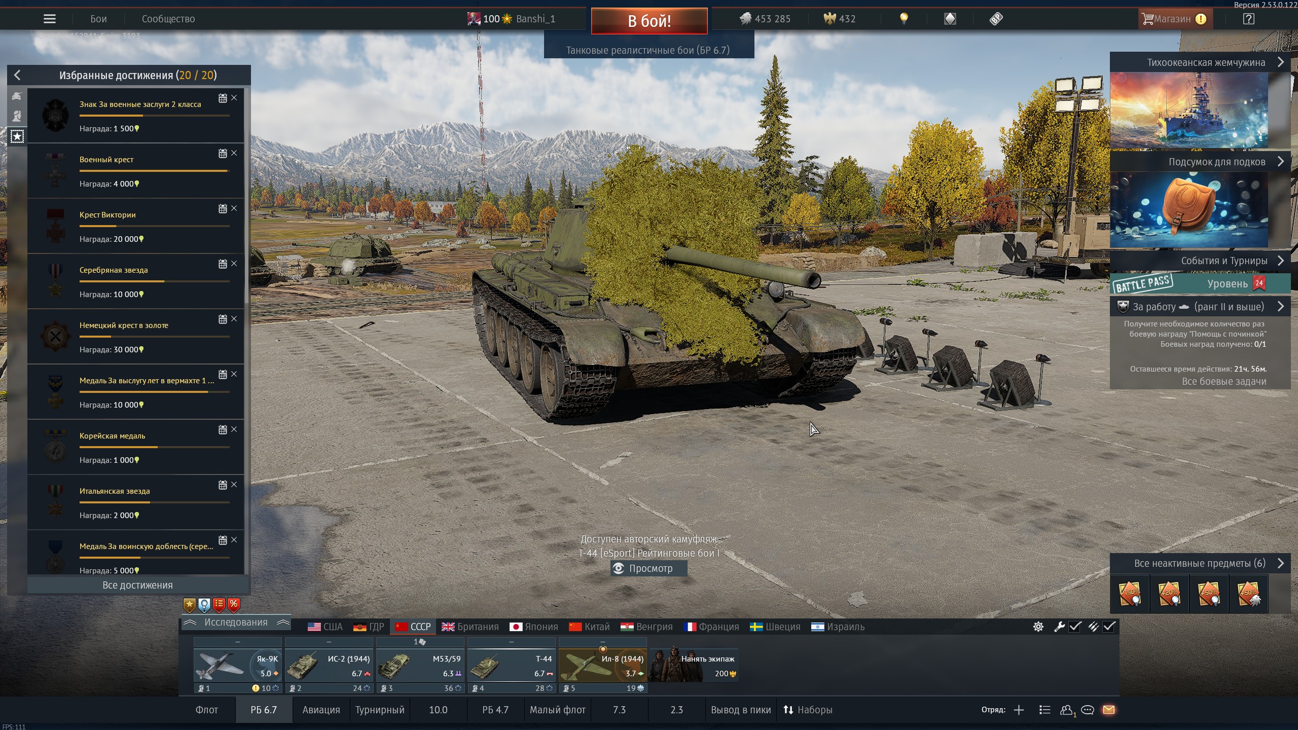 В 6.7 замени прем. Ис-2 на обычного Ис-2 1944, Т-44-122 → Т-44, а Ту-1 → Ту-2С-59