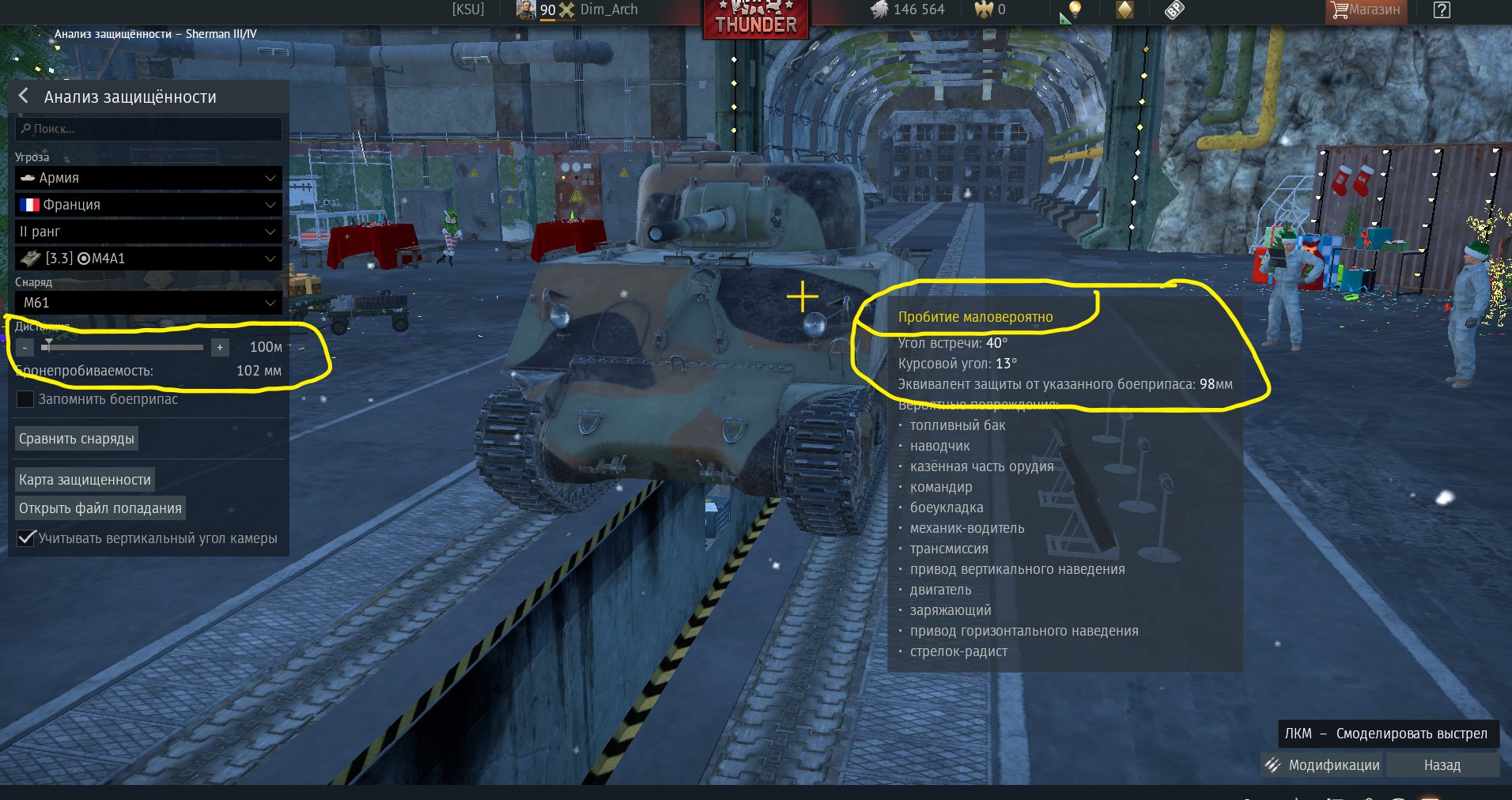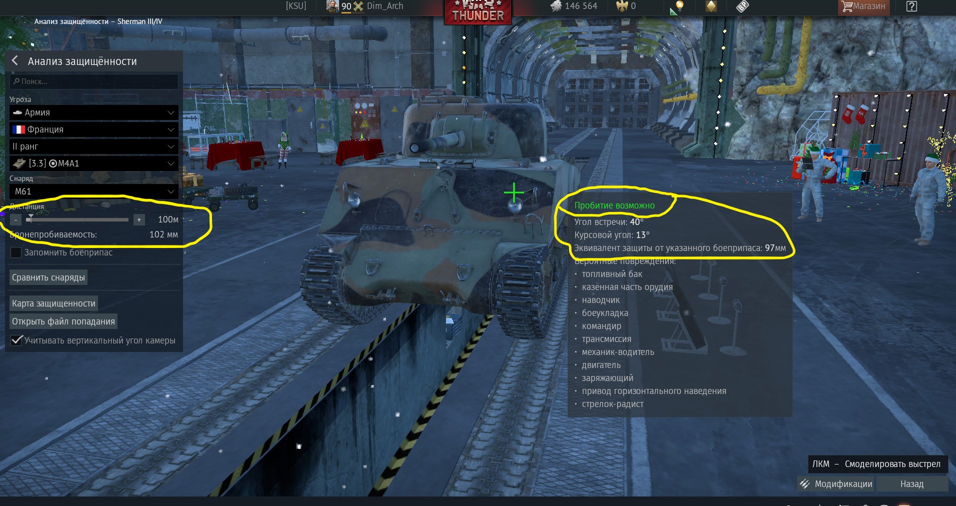 А вот и третий скрин подъехал, где те же параметры кроме брони, она на 1 мм больше, то есть 98 мм, а бронепробитие все то же 102 мм, но мы уже не пробиваем. С какого тля перепугу?